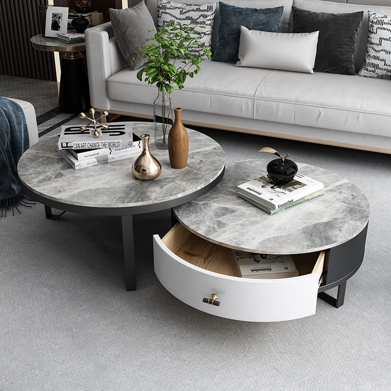 Bàn sofa đôi tròn có hộc kéo chân sắt hiện đại mặt đá ceramic BTS-98 được sản xuất trên công nghệ hiện đại, gia công tỉ mỉ cùng chất liệu đá ceramic chống thấm chống trầy. Chân bàn được làm từ thép sơn tĩnh điện tạo độ mịn và bền lâu, đây là điểm nhấn ấn tượng tăng thêm vẻ đẹp sang trọng, đẳng cấp cho kiến trúc bài trí. Đồng thời với khung chân vững chắc đã tạo nên sự quyền sực cho gia chủ.