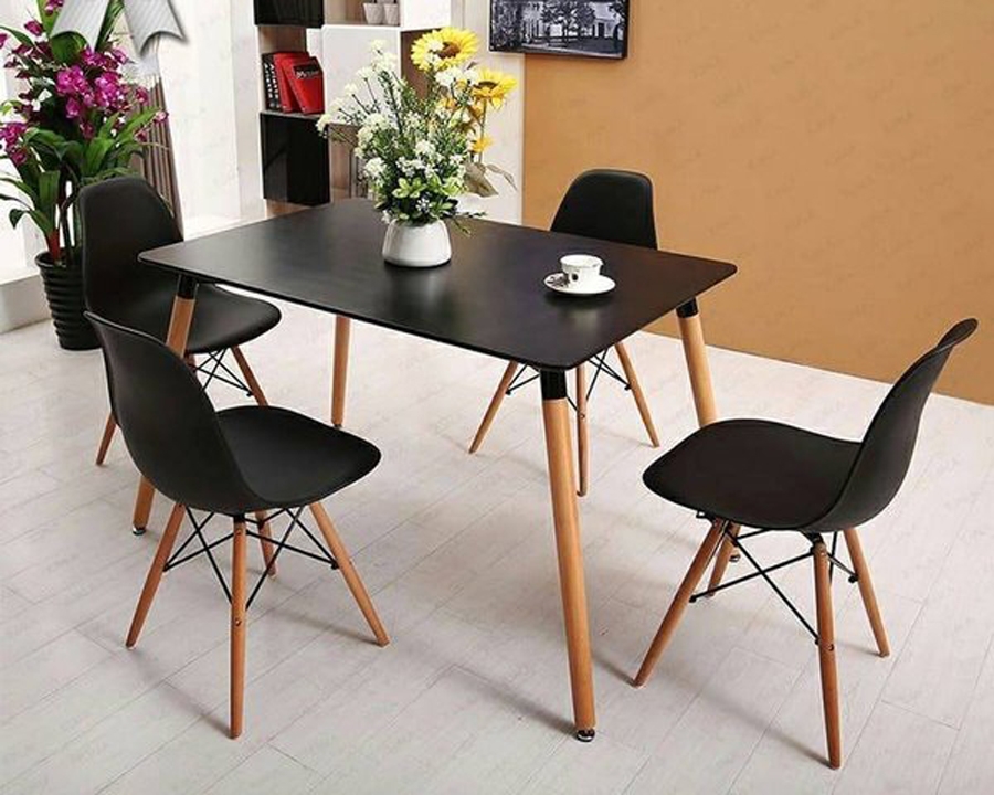 - Mỗi bộ gồm 01 bàn chữ nhật và 04 ghế nhiều màu tinh tế giúp không gian bài trí thêm sang trọng, tăng tính hiện đại.