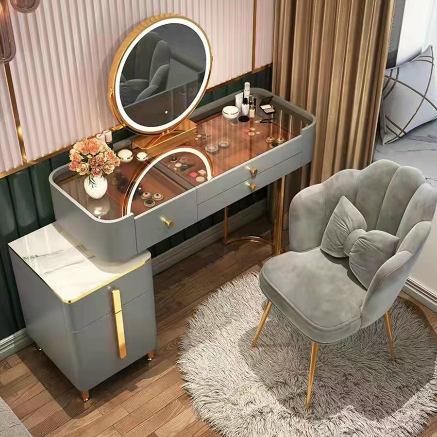 - Sản Phẩm Bao Gồm: Bàn, Gương tròn, Ghế nệm