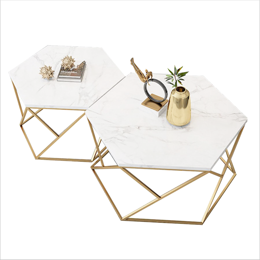 Bộ bàn trà đôi mặt đá hình lục giác BTS-17 Mặt bàn được sản xuất trên công nghệ hiện đại, gia công tỉ mỉ cùng chất liệu đá nhân tạo đã qua xử lý với vân đá 3D tạo độ bóng nét và sang trọng. Chân bàn được làm từ thép sơn tĩnh điện tạo độ mịn và bền lâu, đây là điểm nhấn ấn tượng tăng thêm vẻ đẹp sang trọng, đẳng cấp cho kiến trúc bài trí. Đồng thời với khung chân vững chắc đã tạo nên sự quyền sực cho gia chủ.