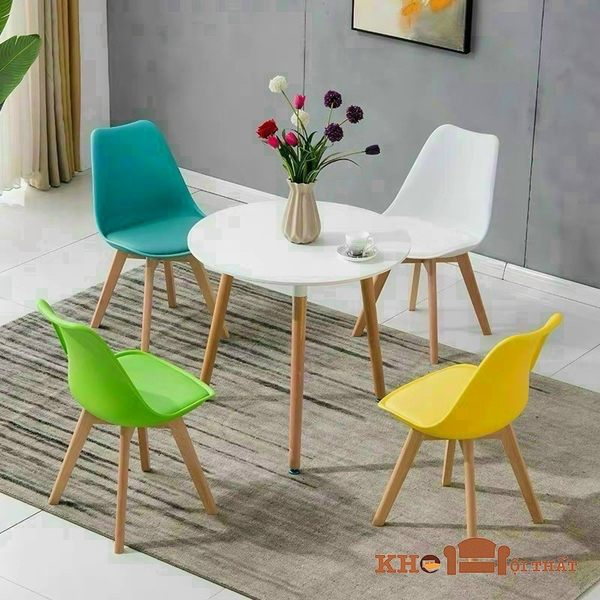 - Màu sắc: Bàn: Trắng, đen; Ghế: Trắng, đen, đỏ, xám, vàng, cam, xanh dương, xanh lá.