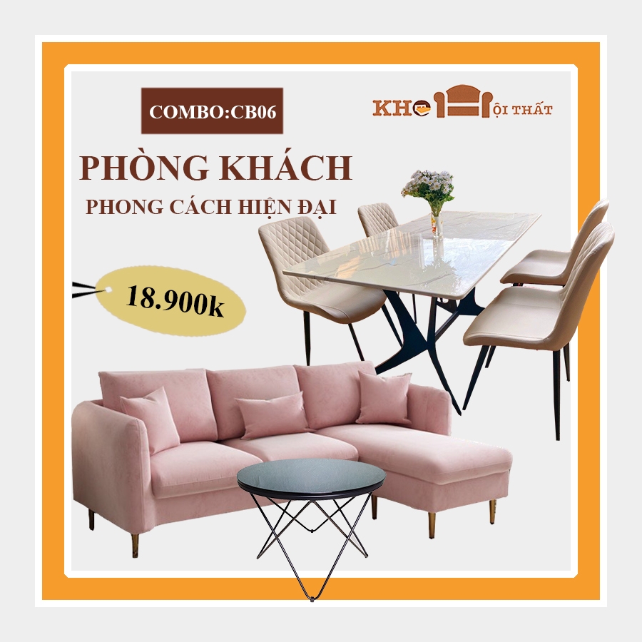 Combo phòng khách CB-06 thiết kế đồng bộ và cân đối từ kiểu dáng tới màu sắc của từng bộ combo theo màu gỗ, màu đơn sắc, và sự kết hợp sắt - gỗ - đá. Nó phù hợp với phần lớn không gian chung cư với diện tích tầm 15m2 – 20m2. Với phong cách hiện đại tạo sự ăn khớp của nội thất với màu sơn tường cũng như các phụ kiện trang trí trong không gian sống của bạn. Vì vậy mà khách hàng chọn mua cũng không bao giờ phải lo lắng tới việc sắm combo này về nó sẽ kệch cỡm với toàn bộ bố cục căn phòng.