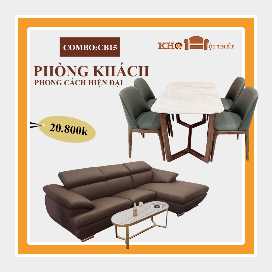Combo phòng khách CB-15 Thiết kế đồng bộ và cân đối từ kiểu dáng tới màu sắc của từng bộ combo theo màu gỗ, màu đơn sắc, và sự kết hợp sắt - gỗ - đá. Nó phù hợp với phần lớn không gian chung cư với diện tích tầm 15m2 – 20m2. Với phong cách hiện đại tạo sự ăn khớp của nội thất với màu sơn tường cũng như các phụ kiện trang trí trong không gian sống của bạn. Vì vậy mà khách hàng chọn mua cũng không bao giờ phải lo lắng tới việc sắm combo này về nó sẽ kệch cỡm với toàn bộ bố cục căn phòng.