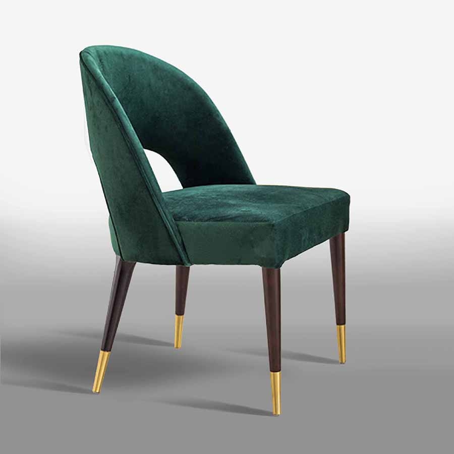 Ghế ăn Collins, ghế cafe nệm chân thép sơn tĩnh điện đẹp ở TP. HCM GA-07 của Essential Home được thiết kế với cảm giác sang trọng theo phong cách cổ điển và được bọc bằng nhung mịn, được hỗ trợ bởi chân màu đen bóng thon với các điểm nhấn phong phú bằng núm vàng đánh bóng.